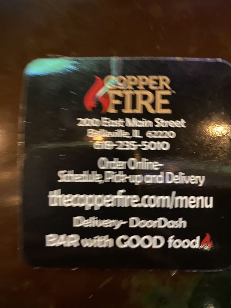Located in Belleville, IL, Copper Fire Bar & Eatery is a vibrant American bar known for its lively atmosphere and diverse menu options. Offering delivery, takeout, and reservations, this trendy spot caters to a wide range of clientele including vegans and those with accessibility needs. With a focus on customer satisfaction, Copper Fire ensures a memorable dining experience by providing excellent service and a variety of amenities such as live music, outdoor seating, and a full bar. While some diners have noted occasional service delays, the overall consensus leans towards positive reviews with praise for the flavorful dishes and cocktail selection. Whether you're in the mood for a delectable Chicken and Turkey panini or a refreshing pina colada, Copper Fire Bar & Eatery aims to please with its welcoming ambiance and tasty offerings. Recommended for those looking for a fun night out with good music and great food.